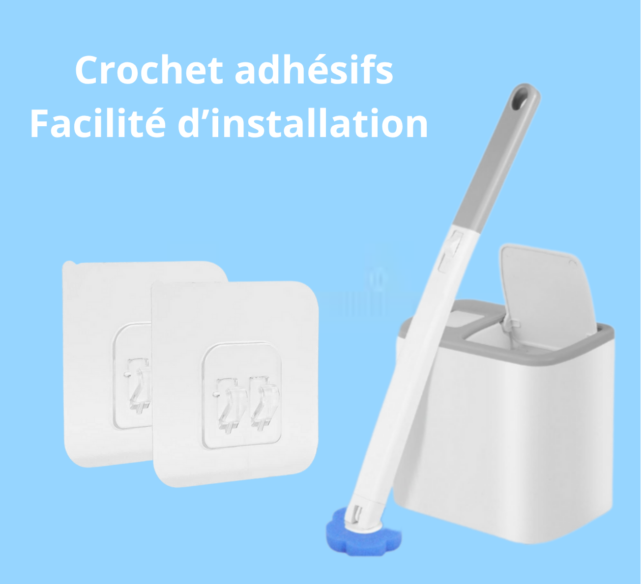 Avec son support mural sans perçage et ses autocollants adhésifs, l'installation de la brosse Hygéosponge est rapide, facile et ne laisse aucune trace sur vos murs. huit